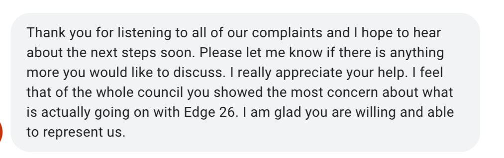 Pushed on behalf of residents for community forums on code enforcement, law enforcement, and more