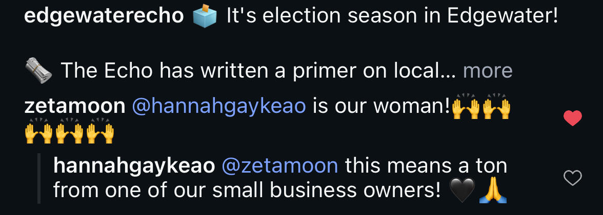 Edgewater is on such a great trajectory of having sustainable and safe spaces for all. But there’s more we can do. That means continuing to push our Mobility Plan forward to make our city and region more accommodating to all who use our streets, bus stops, and sidewalks, in whatever mode of transport they choose. It means continuing to mitigate pollution and climate change, always finding new means to connect to mental health and other wraparound services for those in town who are unhoused and otherwise in need of support, and ensuring city staff and law enforcement are equipped to keep our community safe and welcoming for everybody, including our children in our schools and immigrant neighbors. Our responsibility is to the emotional and physical wellbeing of community members here today as well as that of future and young Edgewater community members of tomorrow.Fiscal Responsibility